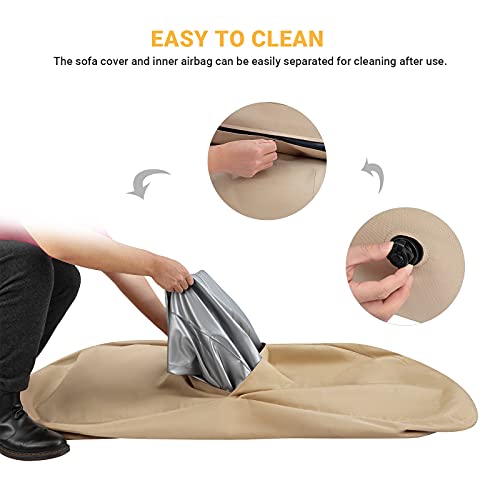 【Facile da pulire e riporre】 il copridivano e l'airbag possono essere facilmente separati, il che è comodo per la pulizia dopo l'uso. Il divano gonfiabile è di piccole dimensioni e la dimensione di stoccaggio dopo lo sgonfiaggio è di 42x37x32cm, peso 6kg, dotato una borsa di trasporto, il che lo fa molto facile da trasportare e riporre.