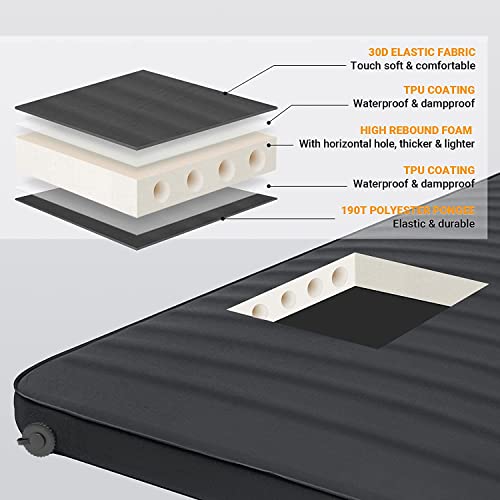 KingCamp Materassino da campeggio autogonfiante, materasso ad aria gonfiabile, materassino gonfiabile in schiuma, doppio (200,9 x 127,8 x 7,6 cm) portatile, grande, spesso, caldo, per campeggio,