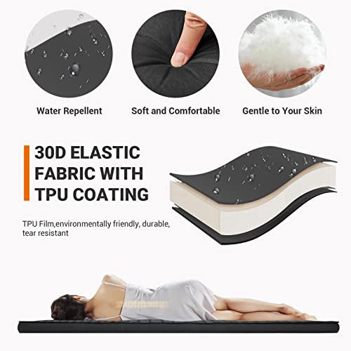 【Lusso Comodo, Design Speciale】L'imbottitura del materasso di spugna ad alta potenza, supporta meglio. La colonna centrale scavata con spazio ragionevole, tenendo conto della leggerezza e del comfort. La superficie ondulata ti regala un'esperienza simile a un massaggio. Questo disegno specile fa il materasso gonfiabile dottato un equilibrio eccellente tra comodo, isolato, termico, leggero, pieghevole e supporto. Tessuto elastico di alta qualità è molto delicato sulle pelle.