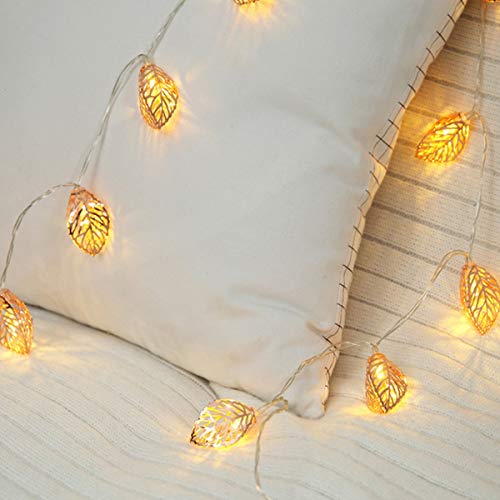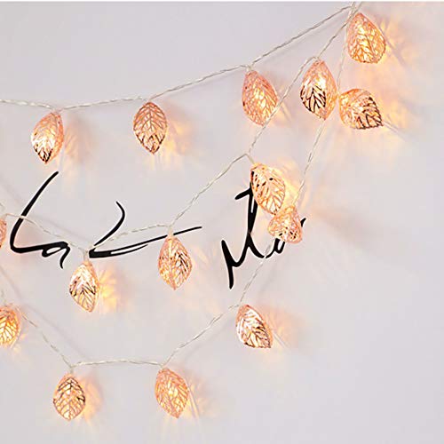 KINGCOO Catena luminosa con paralume vintage, 20 LED, oro rosa, metallo, poligono, lanterna geometrica, alimentata a batteria, per casa, patio, giardino, matrimonio (foglie)