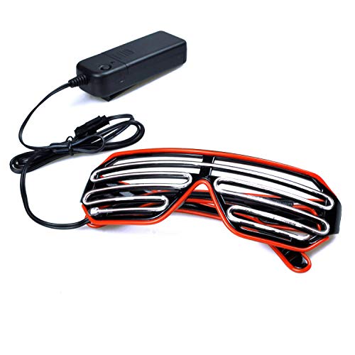 KingCorey Neon Rave Occhiali El Wire LED lampeggianti Occhiali da sole illuminano costumi DJ per feste, anni '80, EDM, Halloween RB5068B(Rosso Bianco)