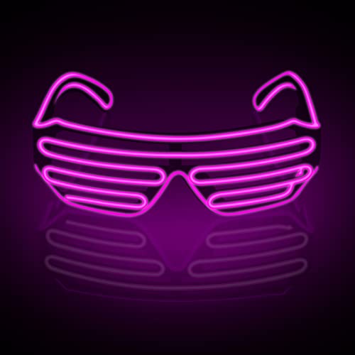 KingCorey Neon Rave Occhiali El Wire LED lampeggianti Occhiali da sole illuminano costumi DJ per feste, anni '80, EDM, Halloween RB5068A(Rosa)