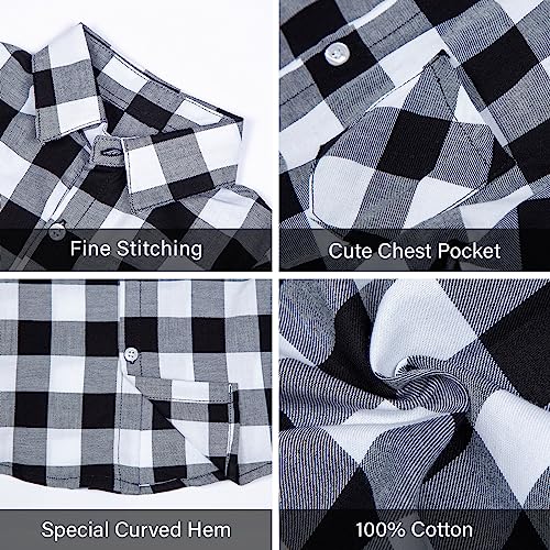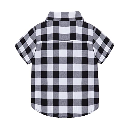 Mud Kingdom Ragazzi Classico Camicia Button Down Plaid Nero Estate Casual 7-8 Anni