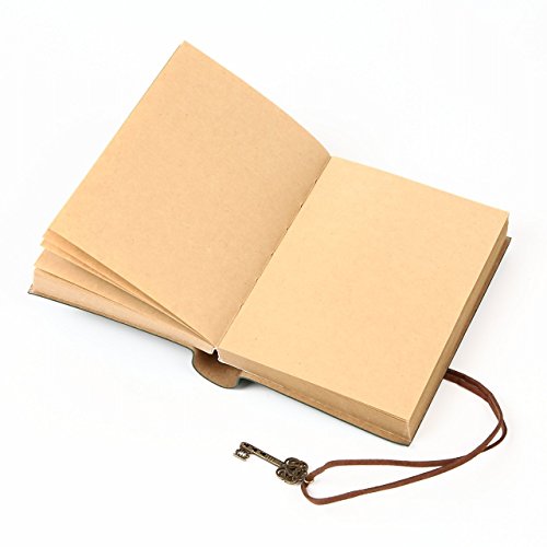 Kingdommax, diario, taccuino, quaderno a foglio mobili con copertina in pelle, stile vintage, pagine bianche e ciondolo a forma di chiave, idea regalo Brown