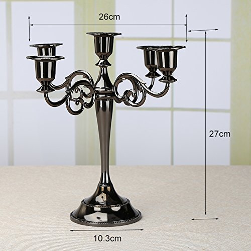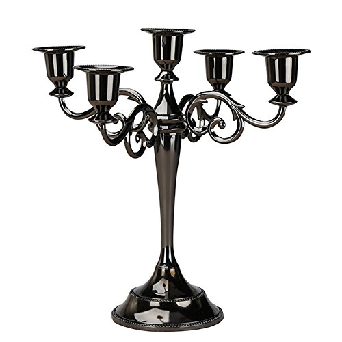 KINGFOM Candelabro a 5 Bracci in Metallo, Colore: Nero