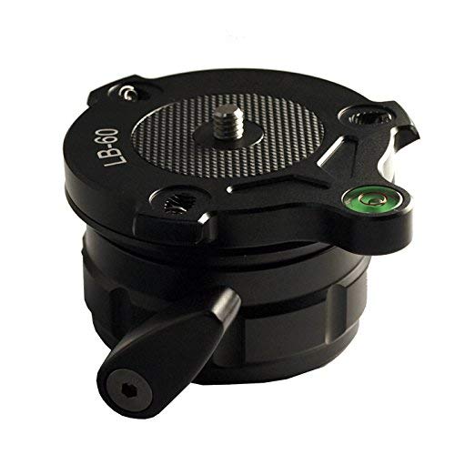 Kingjoy Testa di livellamento LB60 in alluminio lavorato a CNC, base di livellamento con livellamento ad acqua/livellamento per fotocamere con filettatura da ¼" e 3/8", portata fino a 12 kg