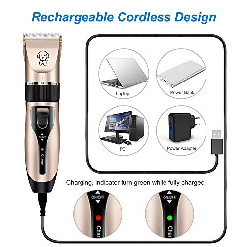 【Comoda ricarica USB, design cordless】 Ricarica rapida USB, adatta per la ricarica rapida in varie occasioni. Design della batteria ricaricabile e riutilizzabile rimovibile, può essere utilizzato in stato wireless e in stato di carica senza preoccuparsi dell'alimentazione. Le tosatrici per animali domestici sono senza fili e facili da usare. Puoi usarlo liberamente senza preoccuparti di rimanere intrappolato nel filo.