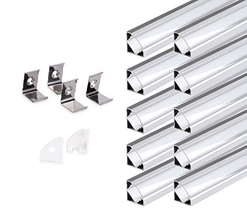 KingLed - 10pz di Profilo in Alluminio Angolare 45 Gradi da 2 Metro Modello 007 con Cover Trasparente Per Striscia Led Cod 2111