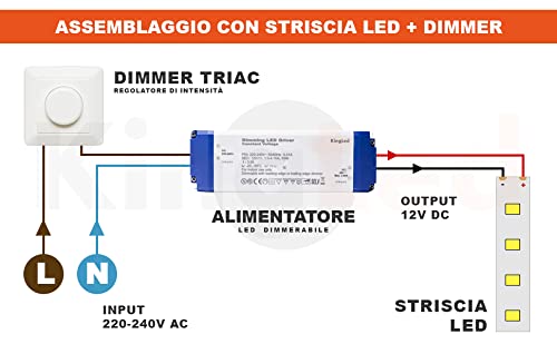 Regolazione della Luminosità attraverso un Controller Dimmer TRIAC, Taglio di Fase, Trailing Edge (Dimmer non Incluso), Range Dimmerazione 1-100%.