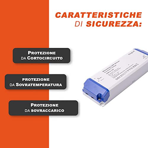 Questo alimentatore è idoneo per l'installazione diretta su superfici infiammabili come Legno o Cartongesso. Consigliato per l'utilizzo su Mobili o Creazione di Lampade Dimmerabili.