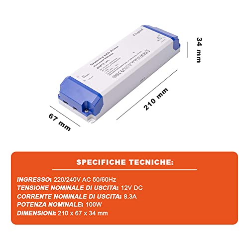 Kingled - Alimentatore 100W DC 12V 8.3A per Strisce Led - Trasformatore Dimmerabile - DIMM12-100 TRIAC