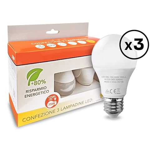 Kingled - Confezione da 3 Lampadine a Led, Bulbo Led A60 Attacco E27, Candela Led Forma Oliva E14 e Mini Globo Sfera E14 (Lampadina Led E27 12W Bulbo, Luce Naturale)