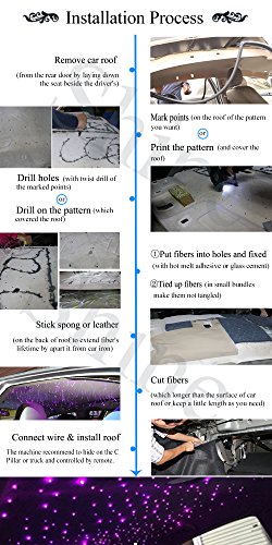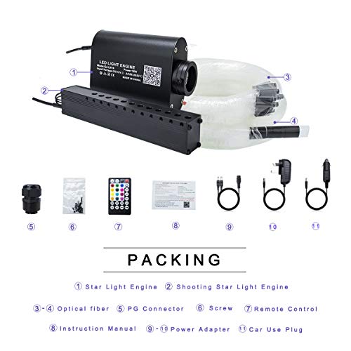 Scelta perfetta di fibra ottica per auto o casa: utilizzando quattro perline RGBW, luce bianca regolabile - la luce più adatta per le stelle. Perfetto per realizzare luci a soffitto stellate per auto o casa, con il suo adattatore di alimentazione UK e la spina per l'uso dell'auto. L'effetto sarà molto più realistico dell'adesivo e del proiettore.