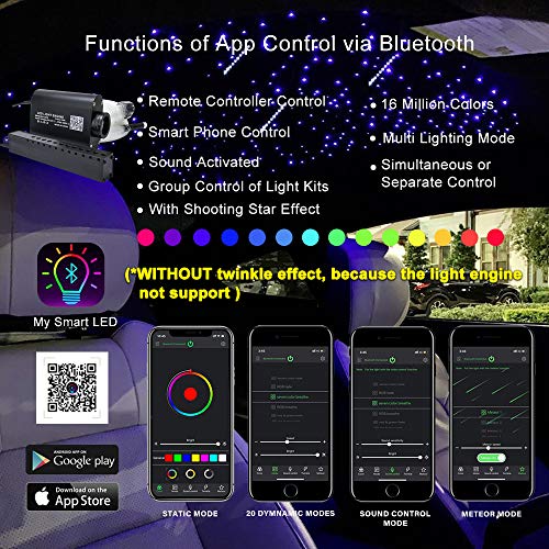 APP AGGIORNATA + SOUND ATTIVATO + SHOOTING STAR VERSIONE: aggiornato con suono attivato e funzione di controllo App, con motore luce meteorica. Dopo aver acceso questa funzione, quando si riproduce la musica, il motore di luce verrà attivato e illumina i cavi di illuminazione. Facile creare un'atmosfera romantica o rendere lo spazio pieno di ritmo.