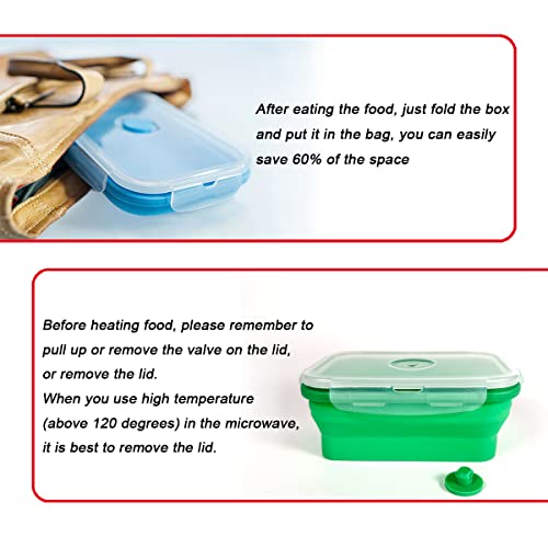 Kingmate Set 4 Pezzi di Contenitori Ermetici per Alimenti Pieghevoli in Silicone con Coperchio, senza BPA, Disponibili per Lavastoviglie, Frigorifero, Forno, Verde