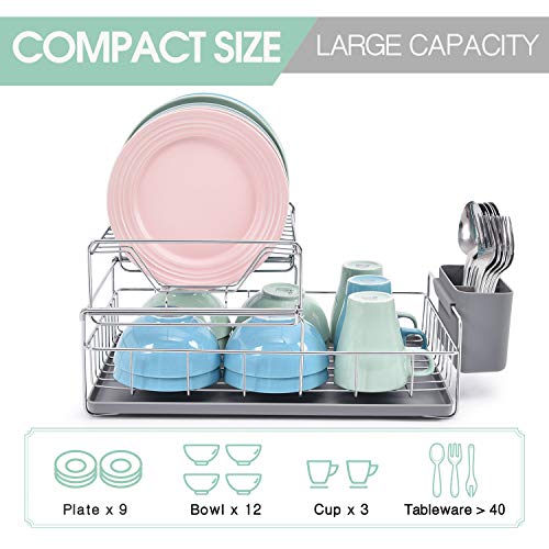 Dimensioni compatte ma grande capacità: la dimensione di questo stendino per piatti è 35* 14,5* 26 cm. Le dimensioni compatte e il design a 2 livelli lo rendono fornisce una grande capacità ma occupa poco spazio sul piano di lavoro. L'intero rack può contenere 9 piatti, 12 ciotole, 3 tazze e più di 40 stoviglie.