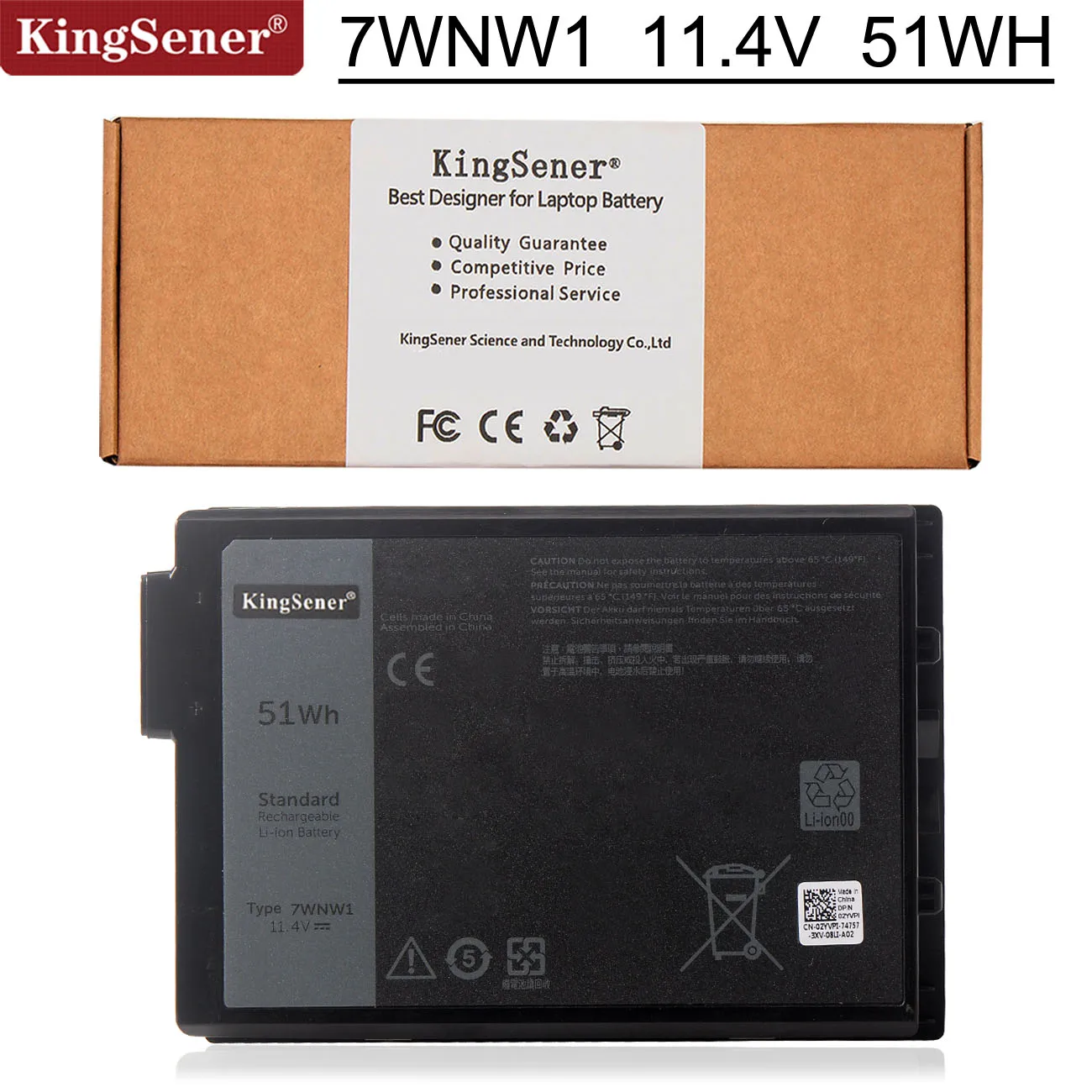 Kingsener 7WNW1 Laptop Battery for Dell Latitude 7424 5424 5420 Rugged Extreme Series Notebook P85G P86G DMF8C 0DMF8C 11.4V 51Wh