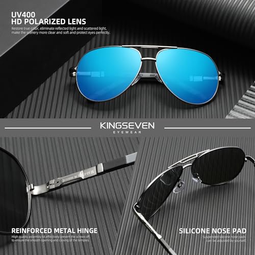 KINGSEVEN Occhiali da Sole Polarizzati Militari Classici da Aviatore per Uomo, Blocco UV Stile Retrò Vintage K725 (Blu/Grigio)
