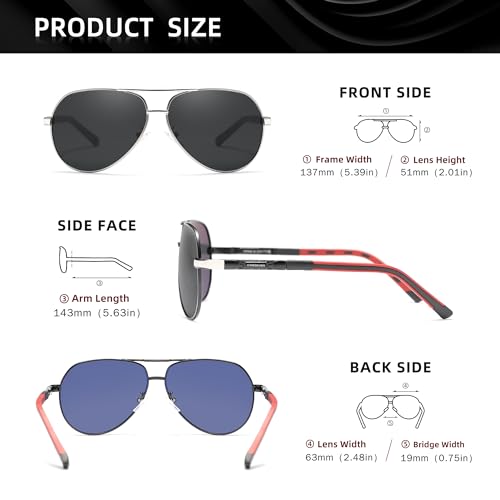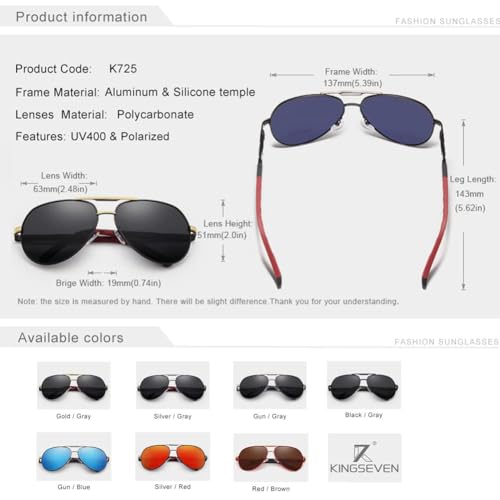 KINGSEVEN Occhiali da Sole Polarizzati Militari Classici da Aviatore per Uomo, Blocco UV Stile Retrò Vintage K725 (Grigio/Argento)