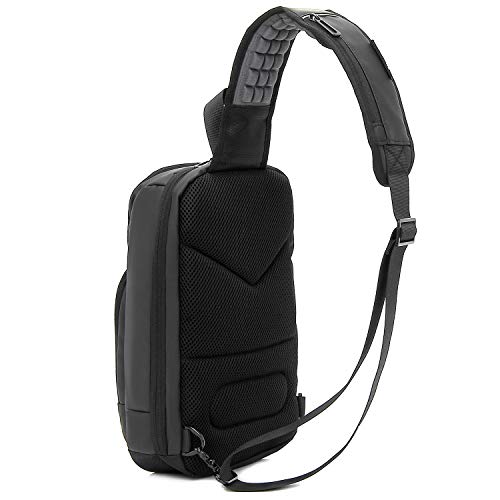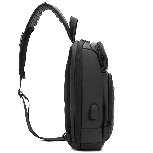 KINGSLONG Monospalla Uomo Borsello da Uomo Tracolla USB Port Impermeabile Zainetto Piccolo per Camminare, viaggiando, Ciclismo, Nero