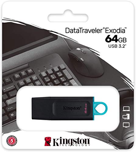Kingston DataTraveler Exodia 64GB USB 3.2 Flash Drives (Bulk 2 Pack) Type-A Drive Gen 1 High Speed PenDrive for Computer, Laptop, PC (DTX/64GB) Bundle with (1) Everything But Stromboli Lanyard