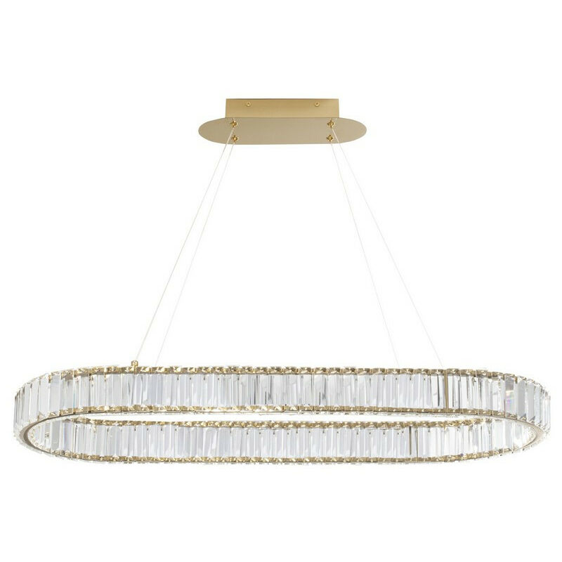 Merano Kingston Plafoniera Bar Sospensione Metallo Oro, Cristallo LED 48W 4505Lm 3500K | Finitura: oro | Materiale: metallo, cristallo | Classificazione IP: IP20 | Altezza minima: 30 cm | Altezza massima: 150 cm | Lunghezza: 92 cm | Larghezza: 37 cm | Tipo di lampada: LED integrato | Lampadina inclusa: Sì | Dimmerabile: Sì | Kelvin: 3500 K | Lumen: 4505lm | Peso: 7 kg | Potenza (massima): 48W