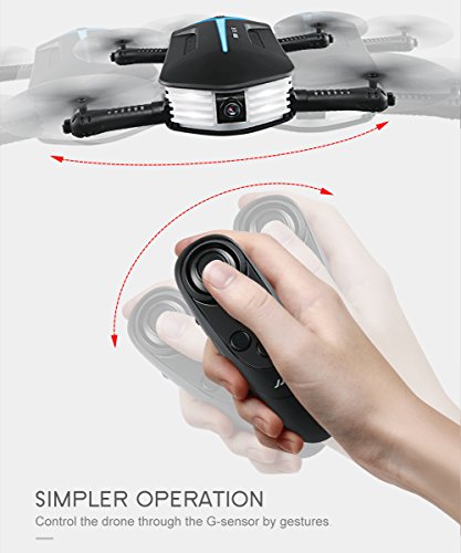 Controllo dell'impugnatura -- 2.4G con controllo gesto di gravità. La modalità G-Sensor consente al piccolo quadcopter di seguire automaticamente il modo in cui si sposta lo smartphone,è più facile da controllare.