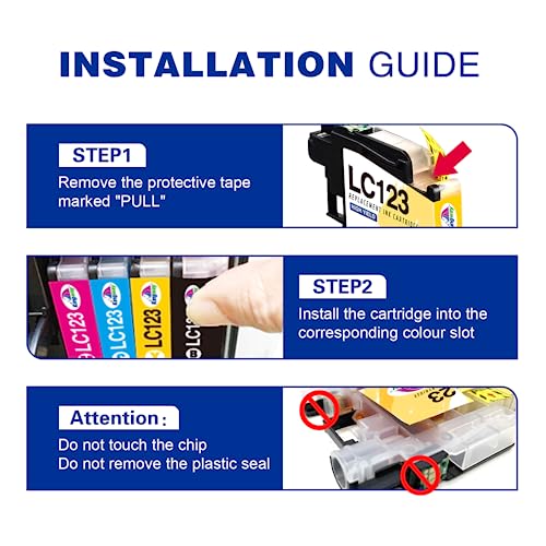 Vantaggio Kingway: facile da installare, nessun problema di riconoscimento, con chip aggiornato, completamente ispezionato per lavorare come con le cartucce originali (prodotto non OEM). Cartucce compatibili con stampanti Brother LC123, colori: nero/ciano/magenta/giallo.