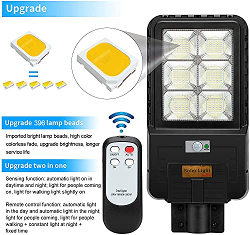 【Super luminoso】Lampione Solare LED Esterno da 300 W super luminosa. La lanterna solare ha 396 perle di lampada a LED, luce bianca diurna 6500 K, illuminazione super grandangolare a 120°. Dopo la ricarica completa, può funzionare per 10-12 ore;