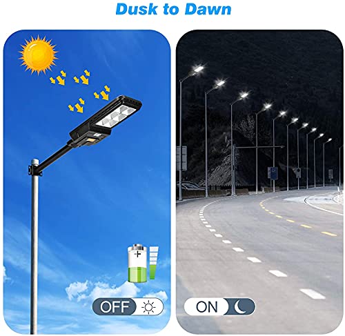 Kingwei 300W Lampione Solare LED Esterno con Pannello Solare, 6500K Luce Fredda, Faro Lampione Stradale Solare con Crepuscolare e Sensore di movimento
