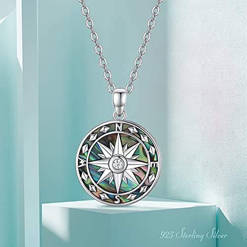 KINGWHYTE Collana con bussola in argento Sterling 925, da uomo, con ciondolo a forma di collana nera per uomo e ragazzo, Argento sterling