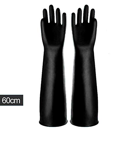Kingwon gomito Lunghezza Guanti di protezione industriale lunga e spessa guanti in lattice in gomma 60 cm anti-acido Schermo usura, 2 accoppiamento colore: nero