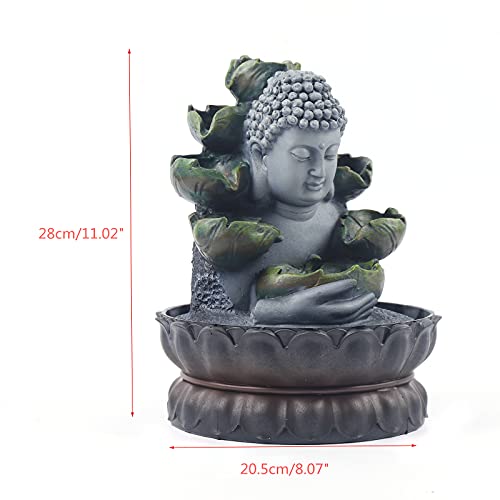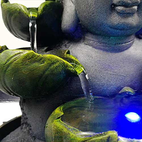 KinHall Fontana d'acqua Buddha statua fatta a mano in resina Buddha statua acqua corrente LED Fontana interna Zen Ornamenti Waterscape Feng Shui Home Office Ornamento (C)