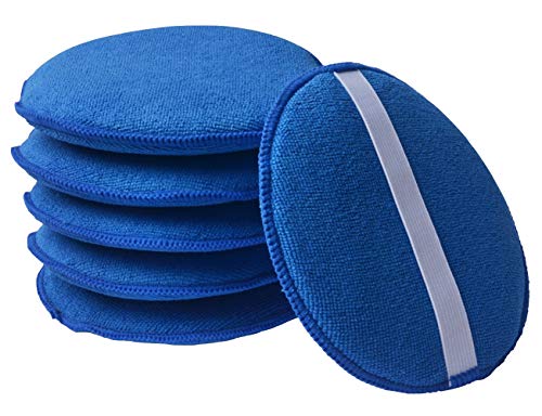 KinHwa applicatore di cera a microfibra applicatori in spugna per cera lucidante,pad per pulizia auto e veicoli diametro 12.5cm 6 pezzi blu