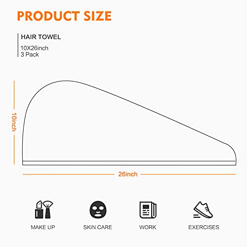 KinHwa Asciugamani Turbante Magicamente Assorbente Turbante Microfibra per Capelli Asciugatura Rapida e Super Soft con Bottone 25cm x 65cm 3 Pezzi - Grigio