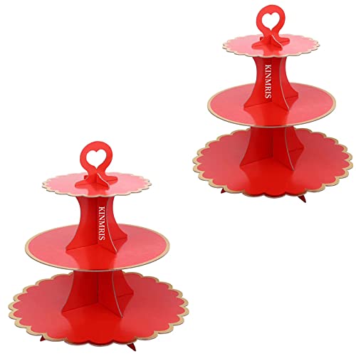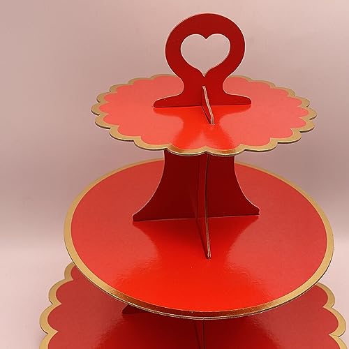 KINMRIS Confezione da 2 alzate per cupcake a 3 livelli con bordi dorati, alzata per torte in cartone, per feste di compleanno, a 3 livelli (I-Red)