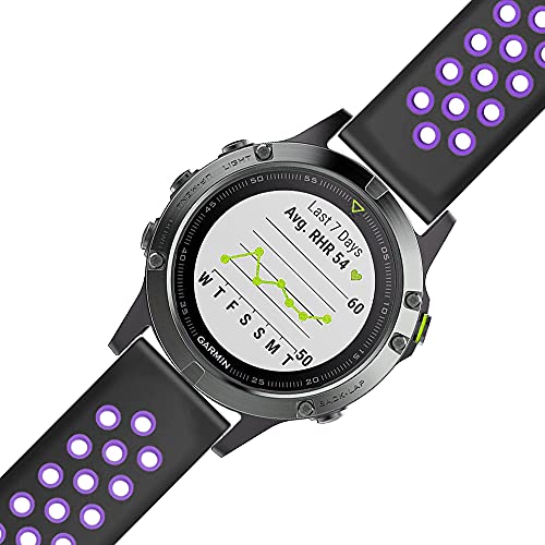 KINOEHOO Cinturino Compatibile con Garmin Fenix 5/5 Plus/Fenix 6/6 PRO/Forerunner 935 Cinturini di Ricambio in Silicone.(Nero Viola)