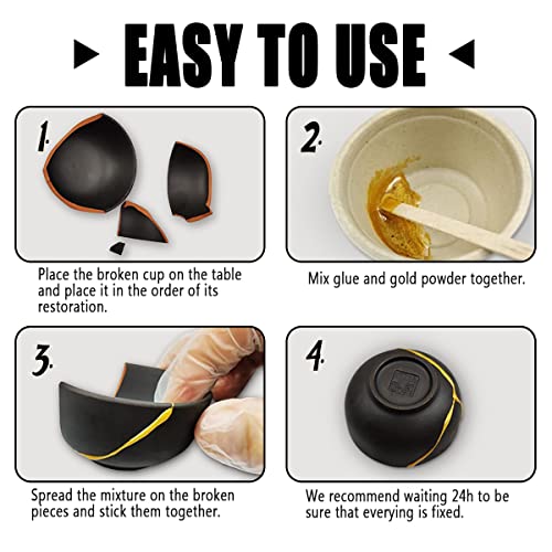 Kintsugi Kit, kit per kintsugi di riparazione d'oro per riparare le tue ceramiche con polvere d'oro e colla e mastice epossidico, Kintsugi repair kit perfetto per principianti