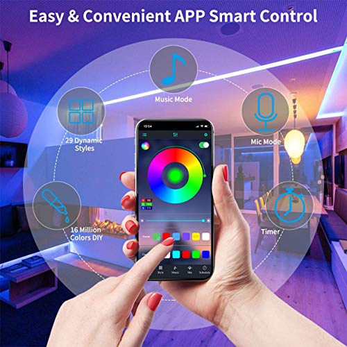 Kintty 20M Bluetooth Striscia LED RGB, Kit Strisce LED Musicali 5050 SMD 600 LEDs Luci RGB, Controllo APP e Telecomando 40 tasti, Funzione Musicale, per Decorazioni Cucina, Bar, Festa