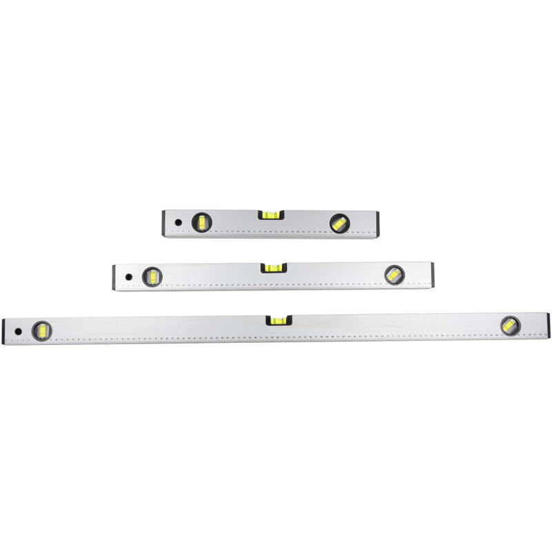 È livellato? Nella trave di alluminio c'è un tubo pieno di liquido che non gela alle basse temperature, e una bolla d'aria che ti permetterà di controllare se effettivamente la tua superficie è dritta.Questo metodo misura molto accuratamente, il set è composto da tre livelle a bolla d'aria di diverse lunghezze. SPECIFICHE PRODOTTO:Marca: KINZODimensioni: 40, 60 e 100 cmGradi: 0°, 45°, 90°Materiale: alluminio CONTENUTO DELLA CONFEZIONE:1 x Set 3 Livelle a Bolla d'Aria in Alluminio 40/60/100 cm Inclinazione 0°/45°/90°