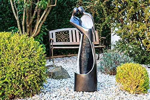 Fontana in pietra fusa dal design esclusivo, realizzata a mano, difficilmente distinguibile dalla pietra vera. Scultura dal design elegante, raffigurante una coppia che si abbraccia. Colore: grigio scuro / grigio / nero.