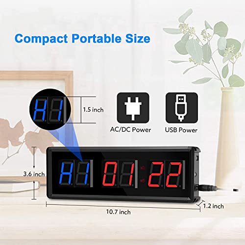 Kipebep Palestra Timer, LED Intervallometro Parete Countdown Orologio Digitale Fitness Timer, 1.5Inch Digits a Il/Up Orologio Cronometro per la