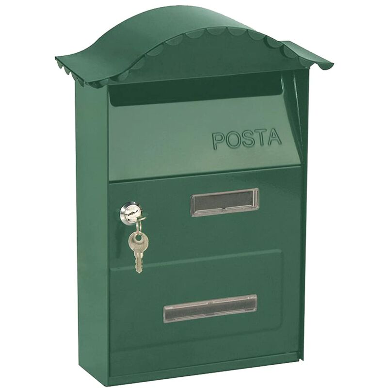 Cassetta postale modello glory, colore verde, in lamiera verniciata a fuoco. Serratura a cilindro con chiavi incluse. Facile da installare alla parete grazie al kit di elementi per il fissaggio inclusi.