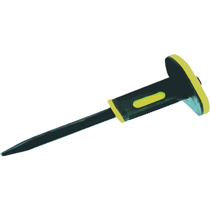 Scalpello per edilizia a punta acuta. In acciaio al cromo vanadio con finitura black. Paramano dal diametro di 9 cm con impugnatura in bicomponente. Dimensioni 18 x 300 mm.