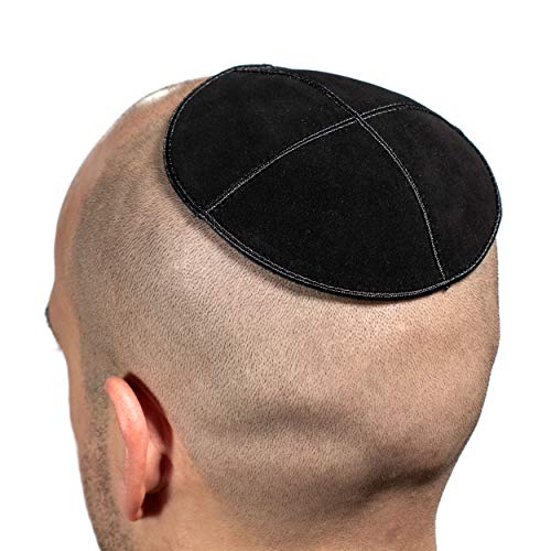 JL Kippha's Kippah 16 cm Ebrei Pelle, Nero Kipa Yarmulke Sinagoga
