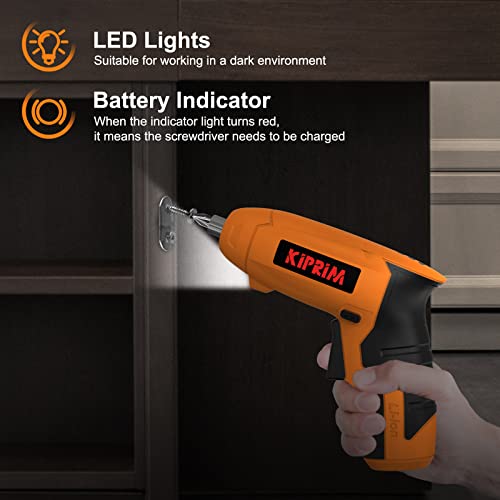 Kiprim ES4 - Piccolo cacciavite elettrico, con batteria ricaricabile, luce frontale a LED e luce di visualizzazione per la casa fai da te'