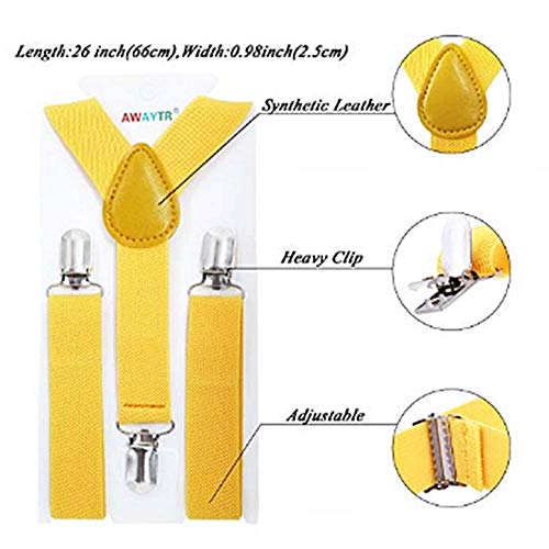 KIRALOVE Bretelle bambino - farfallino y - giallo - papillon - completo - bretelle elastiche regolabili tinta unita - idea regalo originale - ottima qualita