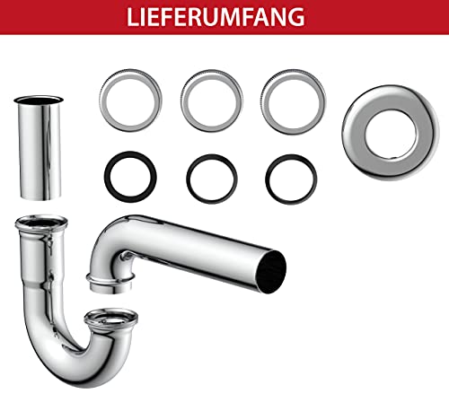Kirchhoff 98801110 Tubolare, Set lavabo e lavatoio, sifone per odori, Tubo di Scarico, 1 Pezzo, Cromo, Standard, Set di 6 Pezzi