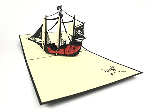 3D Pop Up Kirigami vibrazione - nero nave pirata compleanno Nameday di biglietti d' auguri di buon compleanno
