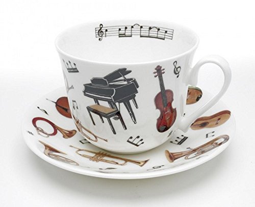 Roy Kirkham - Tazza da colazione in porcellana Bone China con piattino, design concerto